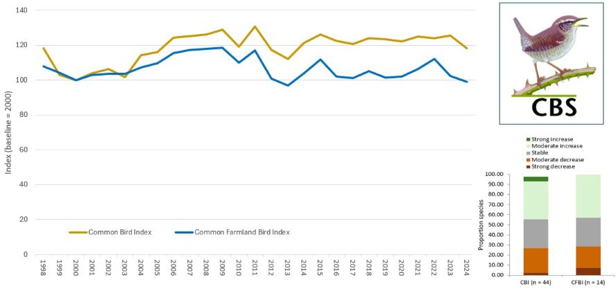 The Common Bird Index (CBI) and Common Farmland Bird Index (CFBI) 1998 – 2024.