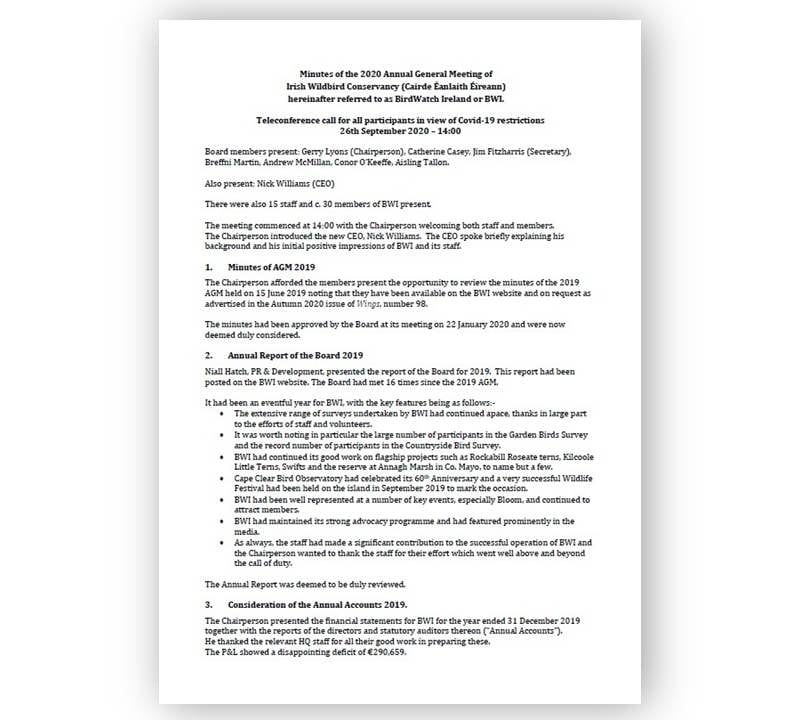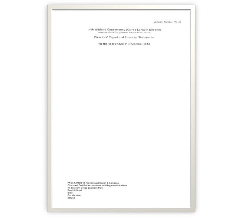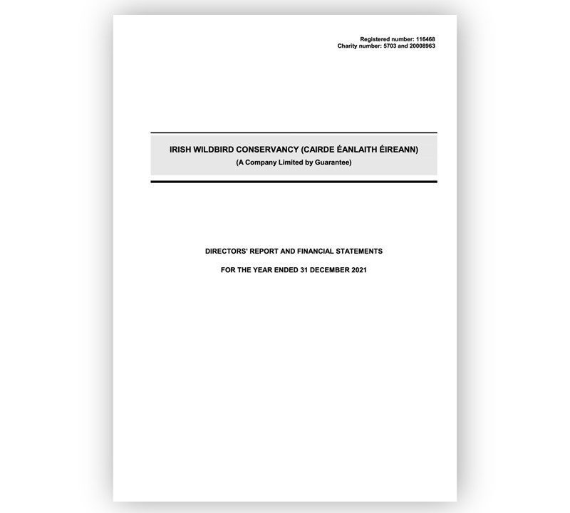 Irish Wildbird Conservancy (trading as BirdWatch Ireland) is a company limited by guarantee, registered in Ireland : CRO No. 116468